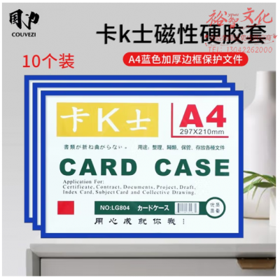 国为(COUVEZI) 卡k士磁性硬胶套PVC卡片袋文件保护卡套 带磁力贴框展示牌仓库货架标识牌 A4蓝色10个(带磁贴) SKU:yzwhyp317944