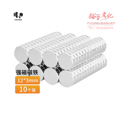 国为(COUVEZI) 圆形强力磁铁/磁片/高强度钕铁硼小磁石/教学白板小磁铁片强磁铁 吸铁石 12*3mm(10个装) SKU:yzwhyp317991