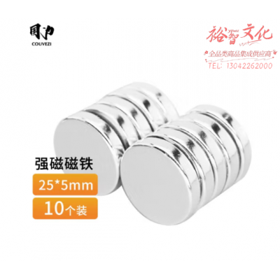 国为(COUVEZI) 圆形强力磁铁/磁片/高强度钕铁硼小磁石/教学白板小磁铁片强磁铁 吸铁石 25*5mm(10个装) SKU:yzwhyp317995