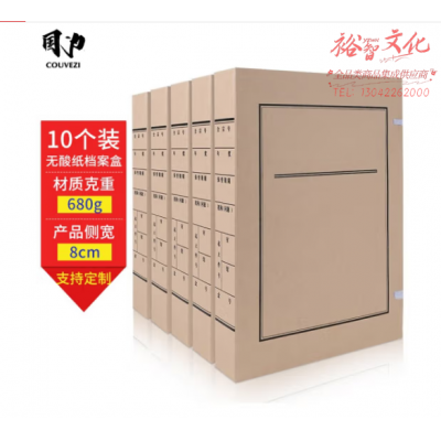 国为(COUVEZI) 10个装A4无酸文书档案盒 新标准牛皮纸文件盒支持定制 8cm无酸文书-10个装 SKU:yzwhyp318015