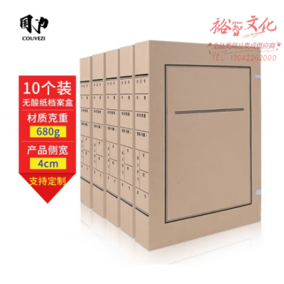 国为(COUVEZI) 10个装A4无酸文书档案盒 新标准牛皮纸文件盒支持定制 4cm无酸文书-10个装 SKU:yzwhyp318016