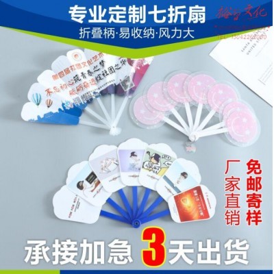 广告扇 折叠七连扇定制五连扇定做PP塑料珠宝广告扇七折宣传招生扇子LOGO SKU:yzwhyp109648