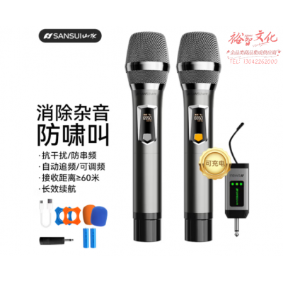 首页 > 广播、电视、电影设备 > 组合音像设备 > 会议、广播及音乐欣赏系统 > 山水(SANSUI)K39无线话筒防啸叫连接家用音响户外主持会议教学通用万能麦克风一拖二 SKU:yzwhyp109732