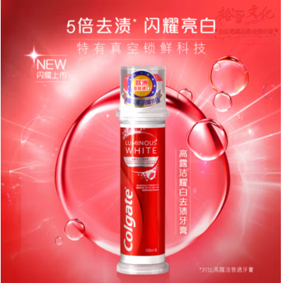 高露洁(Colgate)耀白去渍直立按压式泵式美白牙膏100ml 5倍去渍 闪耀亮白(支) SKU:yzwhyp318083