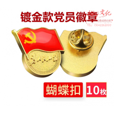 国为(COUVEZI) 【不褪色】镀金党员徽章 标准党徽胸章 厚度2mm 蝴蝶扣(10个装) SKU:yzwhyp318152