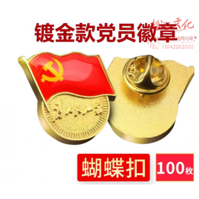 国为(COUVEZI) 【不褪色】镀金党员徽章 标准党徽胸章 厚度2mm 蝴蝶扣(100个装)加送10个 SKU:yzwhyp318155