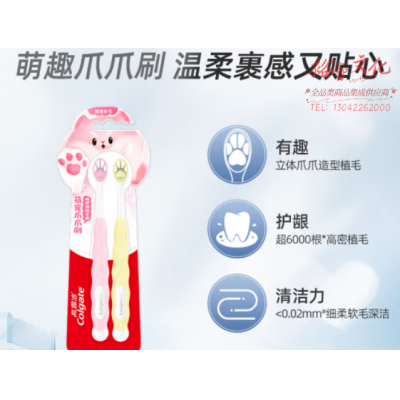 高露洁(Colgate)儿童萌宠爪爪牙刷 宝宝牙刷猫爪刷女孩3岁以上 软毛护龈 2支装 SKU:yzwhyp318162