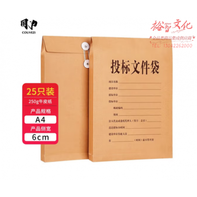 首页 > 办公用品 > 文具 > 国为(COUVEZI) 加宽招标牛皮纸投标文件袋档案袋合同文件资料袋办公用品 侧宽6cm 250g 25个装 SKU:yzwhyp318178
