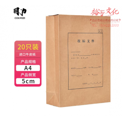 国为(COUVEZI) A4投标文件袋 牛皮纸加厚标书袋 档案袋 资料袋 办公用品 20个装封条 投标文件袋侧宽5cm 20个装 SKU:yzwhyp318185