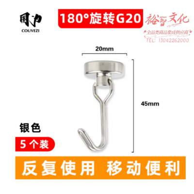 国国为(COUVEZI) 【5个装】强力磁铁挂钩免打孔无痕宿舍家用吸铁石挂钩磁力旋转磁吸挂钩办公桌 G20可旋转银色(5个装) SKU:yzwhyp318188