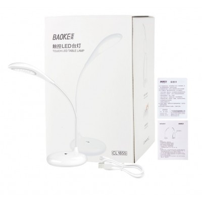 宝克(baoke) CL1855 触控LED台灯 触摸开关/三段调光/USB充电 商务办公/学生用品 46.6*13.5cm 500毫安 1个装 白色