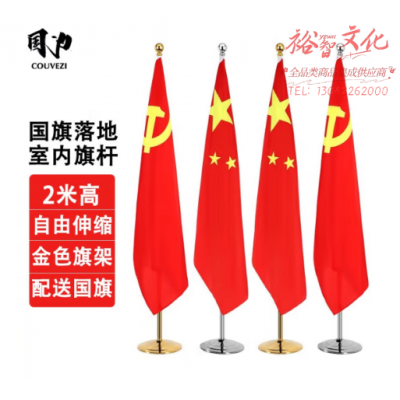 首页 > 电气设备 > 发光标志、铭牌 > 国为(COUVEZI) 【可伸缩】办公室党旗落地国旗带杆摆件室内立式旗杆2米会议室装饰红旗架底座 【2米伸缩款】金色+4号五星红旗国旗一面 SKU:yzwhyp318298