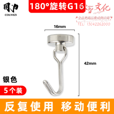 国为(COUVEZI) 【5个装】强力磁铁挂钩免打孔无痕宿舍家用吸铁石挂钩磁力旋转磁吸挂钩办公桌 G16可旋转银色(5个装) SKU:yzwhyp318318
