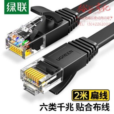 绿联(UGREEN)50174 六类网线 千兆网络宽带线 CAT6类家用电脑监控扁平网线 8芯双绞成品跳线 2米 黑色 SKU:yzwhyp318325