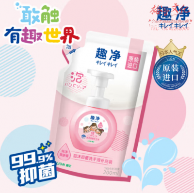狮王(Lion)趣净抑菌泡沫洗手液补充装 柠檬香型200ml(袋) SKU:yzwhyp318377