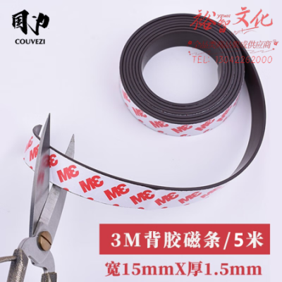 国为(COUVEZI) 强力背胶软磁条/软磁贴/磁条贴纱窗门帘/软磁铁贴/黑白板教学教具3M胶 15*1.5MM5米 SKU:yzwhyp318384