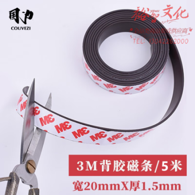国为(COUVEZI) 强力背胶软磁条/软磁贴/磁条贴纱窗门帘/软磁铁贴/黑白板教学教具3M胶 20*1.5MM5米 SKU:yzwhyp318385