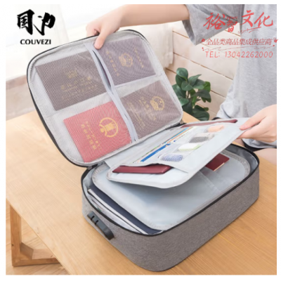 首页 > 装具 > 手提包、背包 > 国为(COUVEZI) 证件收纳包家庭家用大容量盒多功能箱护照户口本存折本重要文件收纳袋 二层带锁(灰色) SKU:yzwhyp318395