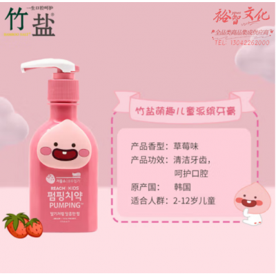 竹盐 2-12岁萌趣儿童派缤按压式牙膏160g草莓味(支) SKU:yzwhyp318415