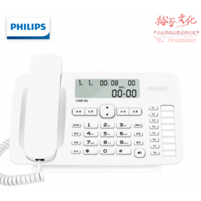 飞利浦(PHILIPS)CORD382电话机座机 免提通话 免电池 来电显示 8组一键拨号 黑名单 白色 SKU:yzwhyp109962