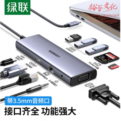 绿联15601 Type-C扩展坞 雷电3/4拓展坞USB-C转HDMI转换器网线转接头3.5音频口 通用笔记本十合一 SKU:yzwhyp109965