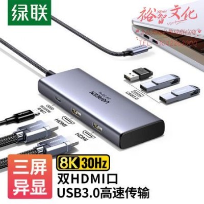 绿联15769 Type-C扩展坞USB-C转双HDMI拓展坞雷电4转接头HUB分线器 通用笔记本iPad电脑转换器 SKU:yzwhyp109973