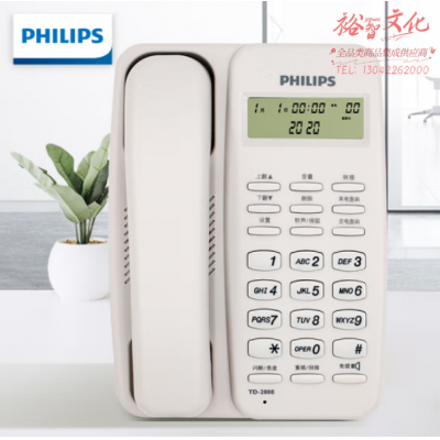 飞利浦(PHILIPS)TD-2808 电话机座机 免提通话 免电池 来电显示 白色 SKU:yzwhyp109980