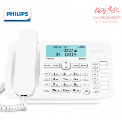 首页 > 通信设备 > 普通电话机(不包含移动电话) > 飞利浦(PHILIPS)CORD385 录音电话机 固定座机 办公家用 自动手动录音 1000小时通话录音机身35度倾角 白色 SKU:yzwhyp110048