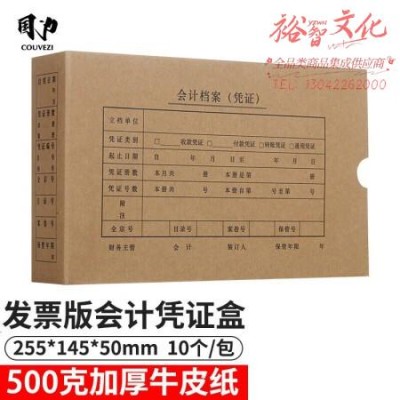 首页 > 办公用品 > 文具 > 国为(COUVEZI)发票版凭证盒子 260*150*50mm 会计凭证档案盒配套凭证封面纸会计盒 【加厚实惠】发票版凭证盒-10个 SKU:yzwhyp318532