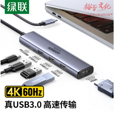 绿联15597 Type-C扩展坞雷电4转HDMI拓展坞 苹果电脑转换器 USB3.0HUB分线器4K60Hz转接器 SKU:yzwhyp110072