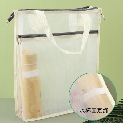 康百 双层网纱手提袋简约透明文件袋拉链袋学生作业袋办公资料收纳袋文具袋 颜色随机-A4-横式 F6734 SKU:yzwhyp203576