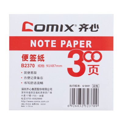齐心(COMIX)B2370 91*87mm 300张/盒 便签纸 白色 SKU:yzwhyp203593