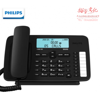 首页 > 通信设备 > 普通电话机(不包含移动电话) > 飞利浦(PHILIPS)CORD385 录音电话机 固定座机 办公家用 自动手动录音 1000小时通话录音机身35度倾角 黑色 SKU:yzwhyp110148