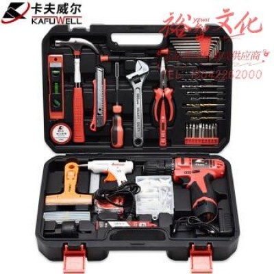 卡夫威尔 122件套锂电钻套装 日常家用工具箱套装 家居备用手电钻工具组套 P3028A SKU:yzwhyp318621