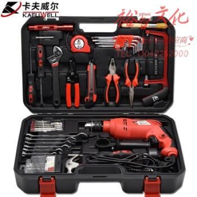 卡夫威尔电钻工具箱套装 冲击钻 家用工具 打孔混凝土维修64件套 H13037A SKU:yzwhyp318630
