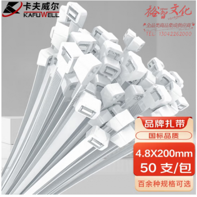 卡夫威尔 自锁式尼龙扎带大号加长 扎线带 加粗园艺扎带理线带束线带捆扎带 4.8*200mm 白色 50支装 OT3033G SKU:yzwhyp318773
