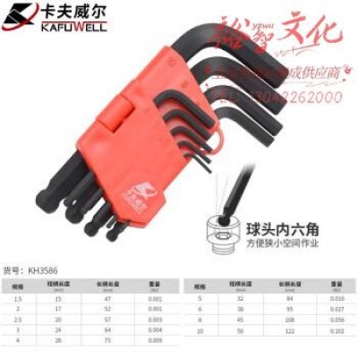 卡夫威尔球头内六角扳手套装9件套公制 自行车扳手螺丝刀手动工具KH3586 SKU:yzwhyp318786