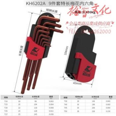 卡夫威尔S2合金钢加长内六角扳手套装梅花头公制特长9件套 KH6202A SKU:yzwhyp318805