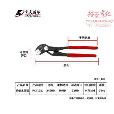 卡夫威尔快速水泵钳大开口圆管钳活口卫浴活动手不欲天数山行10寸 PC4198J SKU:yzwhyp318860
