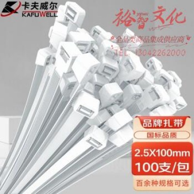 卡夫威尔 自锁式尼龙扎带小号工业扎丝 园艺扎线带 扎带理线带束线带捆扎带 2.5*100mm 白色 100支装 OT3057 SKU:yzwhyp318869