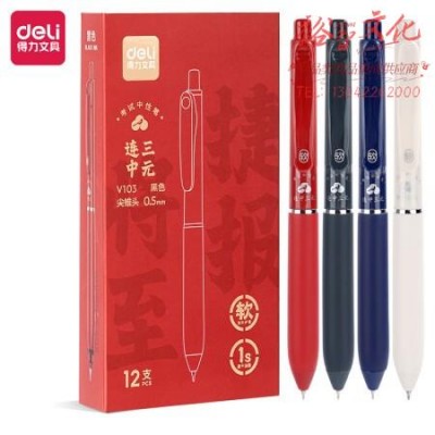 得力(deli)V103 0.5mm考试可用长护套速干笔 按动中性笔 尖锥头 黑色12支/盒(盒) SKU:yzwhyp319020