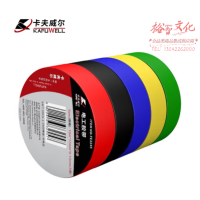 卡夫威尔 彩色绝缘胶带 电工胶布电气电工五卷装红黄绿蓝黑电料阻燃 10M*17mm*0.13mm(5卷)TE3245 SKU:yzwhyp319087