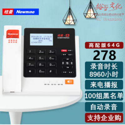 首页 > 通信设备 > 普通电话机(不包含移动电话) > 纽曼(Newmine)HL2008TSD-278(R)录音8960小时 自动录音电话机黑名单 商务办公电话座机 固定电话会议系统 SKU:yzwhyp110235