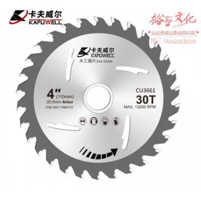 卡夫威尔 角磨机切割片木工锯片 合金圆锯片 台锯电圆锯无尘锯机适用 30齿数 1片装 CU3661 SKU:yzwhyp319156