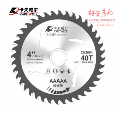 卡夫威尔 角磨机切割片木工锯片 合金圆锯片 台锯电圆锯无尘锯机适用 40齿 1片装 CU3664 SKU:yzwhyp319170