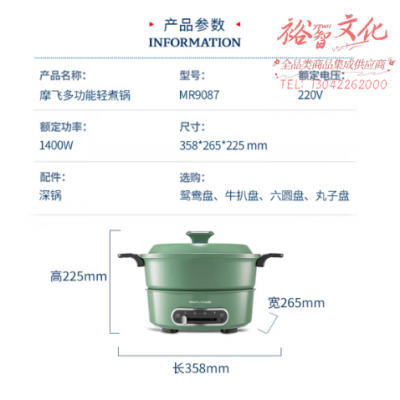 首页 > 用具 > 其他厨房用具 > 摩飞电器(Morphyrichards)电火锅 家用分体式电煮锅 烤涮一体多功能电炒锅电烧烤料理锅 3L电热火锅锅 MR9087 薄荷绿 SKU:yzwhyp110371