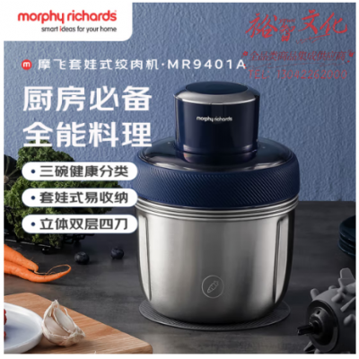 首页 > 用具 > 其他厨房用具 > 摩飞电器(Morphyrichards)绞肉机 家用套娃绞馅机碎肉机 电动多功能辅食料理机打蒜搅拌机 不锈钢三碗 MR9401A SKU:yzwhyp110375