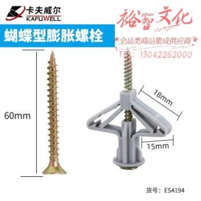 卡夫威尔 蝴蝶型膨胀管 飞机型自攻螺丝 螺栓石膏板膨胀螺丝墙塞螺丝钉 20套 M8*50 ES4194 SKU:yzwhyp319232