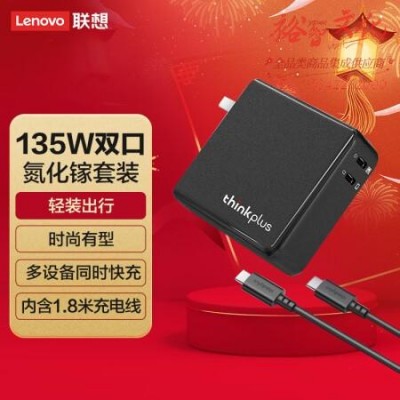 联想thinkplus 口红电源135W氮化镓充电器 黑 笔记本电脑手机平板电源适配器4X21H0289 SKU:yzwhyp319236