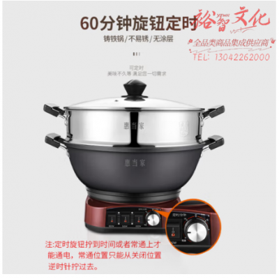 首页 > 用具 > 其他厨房用具 > 惠当家(Hui Dang Jia)电炒锅多功能电热锅电锅定时电蒸锅一体加厚铸铁锅电煮锅多用途锅 铸铁锅身-38cm单笼【定时款】 SKU:yzwhyp110454
